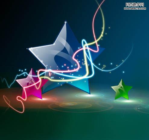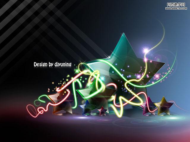 本教程的效果看上去非常不錯。顏色艷麗,畫面構圖清新自然。制作過程也不是很復雜。主體部分是五角星的制作,需要慢慢調整它的質感部分。當然為了突出畫面效果,背景及裝飾部分也非常重要。