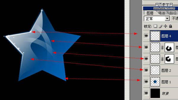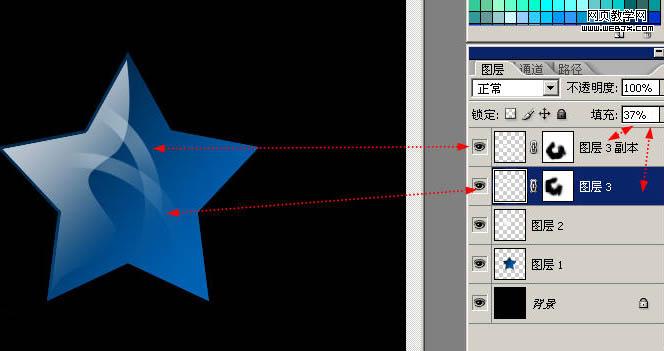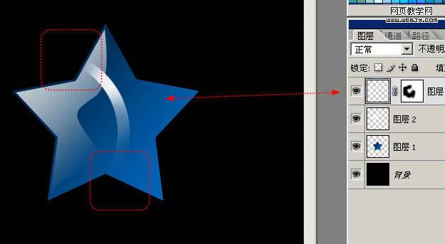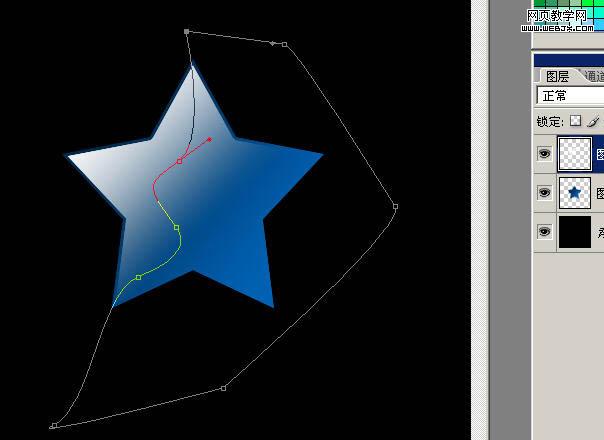 15、五角星看起來不通透,我們給他制作一個背光折射,還是收縮3px,使用前景色到透明在不同的圖層圖拉漸變,注意前景色要設置成藍色哦。