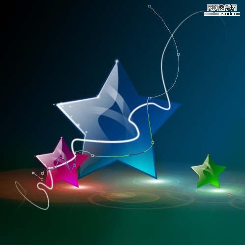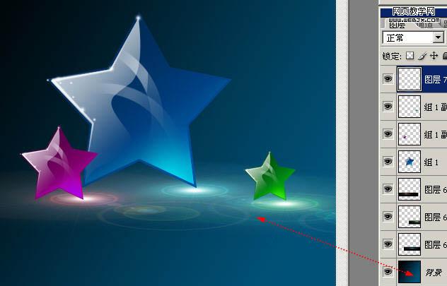 20、此時星星和光暈是分開的,分別復制星星和光暈,調整大小。