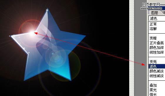 17、混合模式更改為【濾色】,就可以吧剛才的光暈疊加在圖像上。