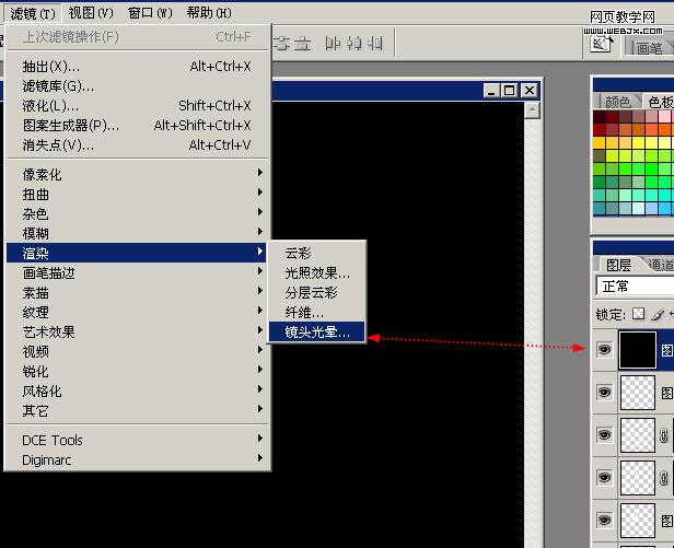 16、在圖層最上方新建圖層,填充黑色,選擇【濾鏡】-【渲染】-【鏡頭光暈】。
