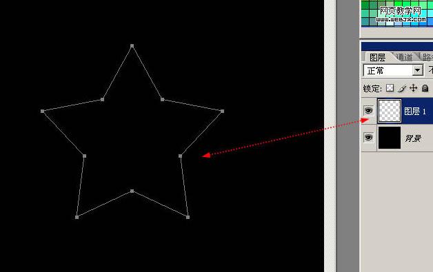 1、新建一個文檔,【ctrl+i】背景反向成黑色,(你也可以直接設置成黑色,方便我們制作光效)。新建一個圖層。并使用【自定義形狀】繪制一個五角星星。