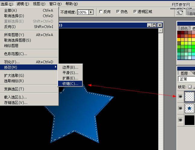 4、保持選區,選擇菜單 【選擇】-【修改】-【收縮】,在彈出的對話框里選擇3px。