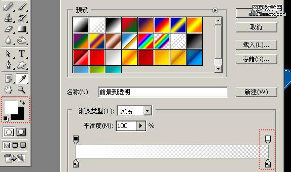 選擇漸變方式為預設第二種:【從前景色到透明】。