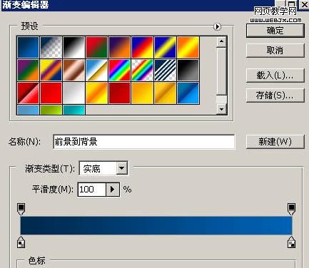 2、調整前景色背景色的顏色為一種同類色的漸變,比如我這里是深藍到淺藍。選擇【線性漸變】。
