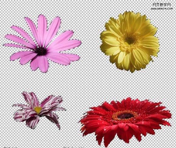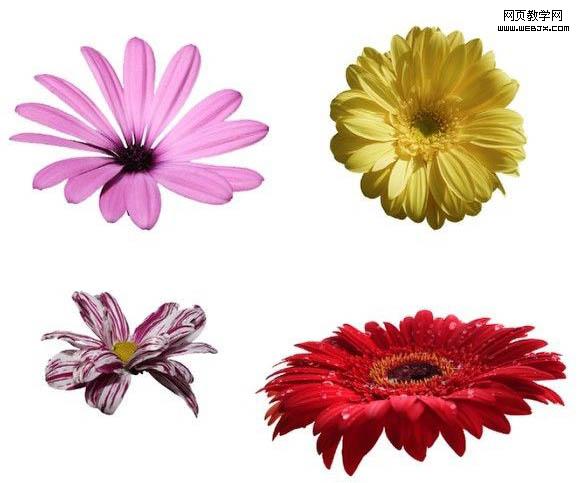 3、現(xiàn)在我們需要一些花朵素材來創(chuàng)造字樣的效果。我使用的花朵素材,你也可以使用任何你認為合適的花朵或者其他素材。 然后我們現(xiàn)在從背景中抽取花朵素材出來,復制她們到現(xiàn)在創(chuàng)建的圖層中。