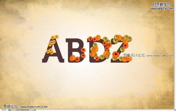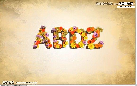鮮花是用來看的,不過在ps里就可以創(chuàng)意出非常不錯的效果。下面的教程將用一些最常見的鮮花來制作可愛的文字。過程也比較簡單,只需要把花朵按照文字輪廓擺放,并加上一些簡單的圖層樣式即可。