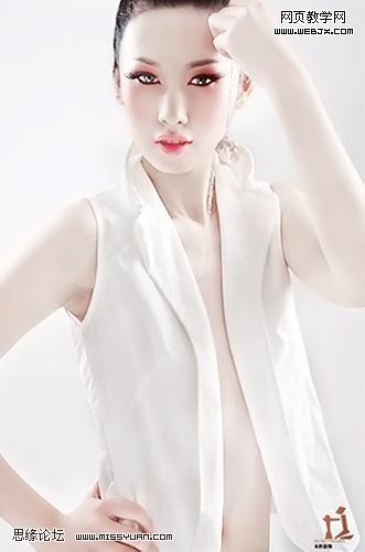 8、用加深減淡工具,加強(qiáng)眼睛的立體感,用自己的方法,為此圖添加紅暈,眼影,注意不透明度,與圖層混合的運(yùn)用,效果如圖:
