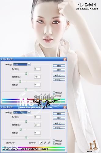 10、按住ctrl鍵同時(shí),單擊第9個(gè)步驟的的圖層蒙版,載入選區(qū),新建一個(gè)“色相飽和度”調(diào)整圖層,設(shè)置與效果圖為: