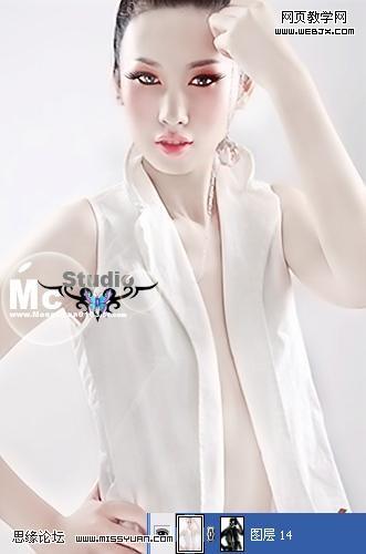 9、發(fā)覺(jué)mt,衣服根本看不到什么細(xì)節(jié)了,就再次找到原圖,復(fù)制一層,移到頂部,添加蒙版,只取原圖的衣服使用,如圖: