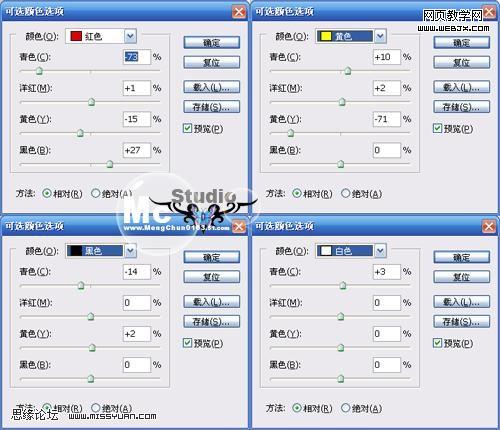 13、現(xiàn)在感覺(jué)此圖平淡無(wú)奇,色彩單一,來(lái)一個(gè)可選顏色,設(shè)置與效果如下: