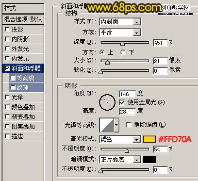 2、把文字柵格化圖層,然后雙擊文字圖層調(diào)出圖層樣式,參數(shù)設(shè)置如圖2,效果如圖3。
