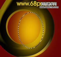 6、在圖層的最上面新建一個(gè)圖層,用橢圓選框工具拉一個(gè)橢圓選區(qū),按ctrl + alt + d 羽化20個(gè)像素,填充顏色:#fdc201,然后按ctrl + alt + g 與前一圖層編組,效果如圖13。