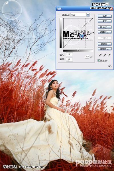 4.新建一個“曲線”調整圖層,提亮。效果與參數(shù)如下: