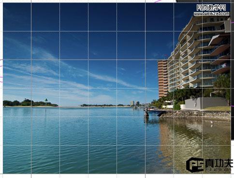第五步:ok,我們繼續新建一層,并命名為“photo 1”。把我們想要處理的照片拉進來。接著我們繼續做輔助線進入視圖—顯示–網格.ok,我們再把photo 1用自由變換工具使它能對準好網格線,這里作者把圖片寬用了8個網格,高用了6個網格。