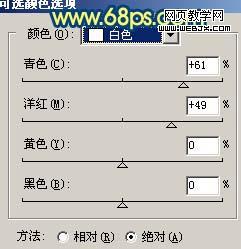 10、創建可選顏色調整圖層,對白色進行調整,參數設置如圖17,確定后把圖層不透明度改為:10%,效果如圖18。