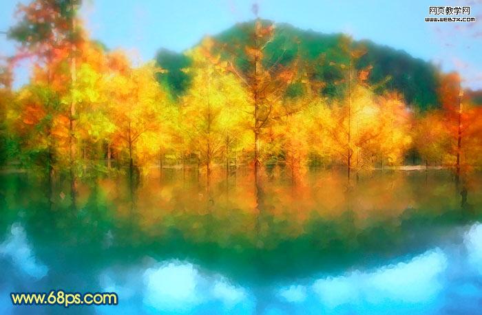 原圖素材看上去比較平淡,畫面層次不是很明顯。比較適合用來做畫面特效如水彩及其它效果。制作的時候只需要用幾個特殊的濾鏡適當處理一下,給畫面加上一些紋理,然后再整體調好顏色即可。