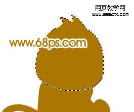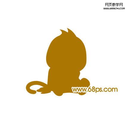 1、新建一個(gè)600 * 600像素的文件,背景填充白色。新建一個(gè)圖層,用鋼筆勾出猴子的輪廓,轉(zhuǎn)為選區(qū)如圖1,然后填充顏色:#ac7700,效果如圖2。