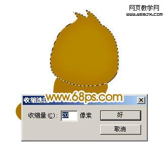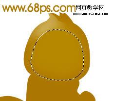 3、調(diào)出猴子頭部選取,執(zhí)行:選擇 > 修改 > 收縮,數(shù)值為20,確定后按ctrl + alt + d 羽化15個(gè)像素,然后新建一個(gè)圖層填充顏色:#b78700,效果如圖5。