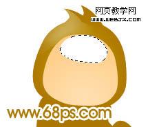 5、新建一個(gè)圖層,用鋼筆勾出猴子臉部的選區(qū),如圖8,拉上圖9所示的徑向漸變色,效果如圖10。