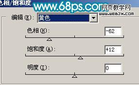 3、創(chuàng)建色相/飽和度調(diào)整圖層,參數(shù)設(shè)置如圖6,確定后只保留花朵部分,其它部分用黑色畫筆擦掉。