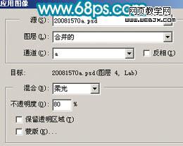 6、執(zhí)行:圖像 > 應(yīng)用圖像,參數(shù)設(shè)置如圖12,效果如圖13。