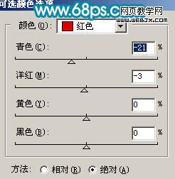 9、創(chuàng)建可選顏色調(diào)整圖層,對紅色進行調(diào)整,參數(shù)設(shè)置如圖16,效果如圖17。