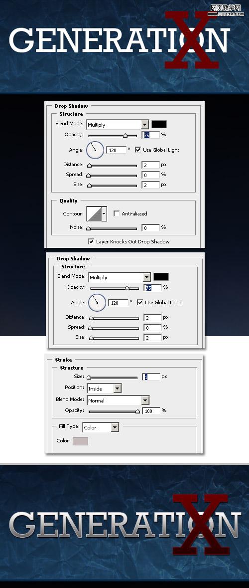 5.接下來,來做個logo.用文字工具上"generation"(rockwell 字體)最后給其添加圖層樣式,效果如圖: