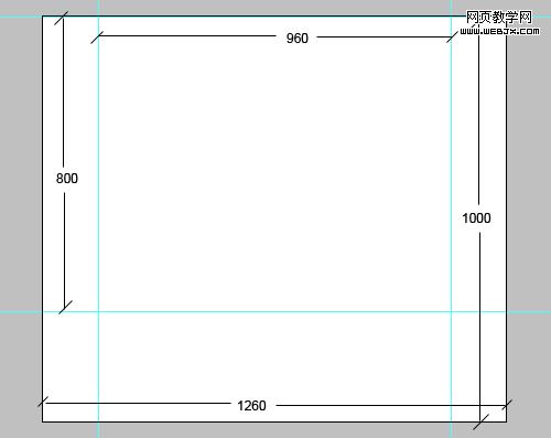 1.新建一個大小1260*1000的空白文件.按crtl+r顯示標尺,并給添加輔助線如圖.