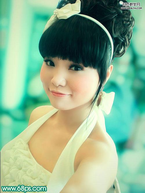 本教程以淡黃及淡青色為主。調色的時候需要把人物和背景分開來調。背景部分調成淡青色,人物部分則調成粉色調。當然可以按照自己的喜好調成各種顏色。