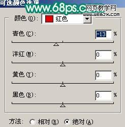 5、執行:圖像 > 調整 > 可選顏色,參數設置如圖11,12,效果如圖13。
