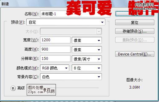 1.新建文件,打開“文件” “新建”。或者快捷鍵ctrl+n,在彈出的新建對話框中設置如圖所示的參數(shù)
