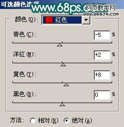 11、創建可選顏色調整圖層,對紅色進行調整,參數設置如圖16,效果如圖17。