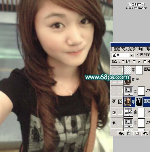 6、這一步來處理人物的五官部分。大致方法跟轉手繪有點類似,不過效果不要太明顯,要不就有點假。只要稍微修復一下五官的輪廓即可,大致效果如下圖。