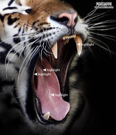 18、在虎牙的兩側添加陰影,這會使畫面看起來更生動。