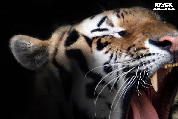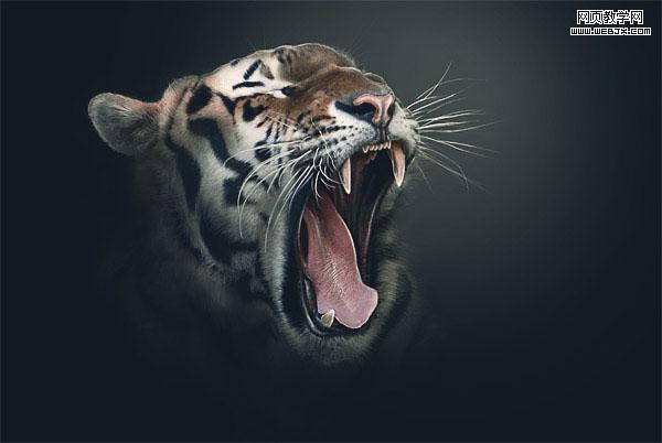 1、打開原圖素材,現在我們要將老虎從背景中分離出來,教程中提供的方法是用圖層蒙版然后一點一點的摳出來,但是我認為用通道來摳這個圖效果更好并且也更容易保存細節。首先我們打開通道面板,選擇紅色通道,將紅色通道復制一份,然后進行色階調整,將黑場的滑塊向右移動并將灰場的滑塊向左移動,直到背景幾乎變為黑色,老虎的邊緣包括胡須變為白色,然后我們用加深工具,選擇加深的范圍是陰影,將背景中不是黑色的部分加深,直到變為黑色,然后再將加深的范圍調整為高光,將胡須和耳朵等部分的顏色變的更加白一些。之后用套索工具在老虎的外邊緣向內一點的地方勾一個大致的輪廓,因為我們要將老虎內部的部分也變成白色,做好選區之后將選區填充為白色,然后點擊通道面板下面的“將通道保存為選區”,這個時候老虎的外輪廓就被完全的選中了,我們的摳圖也就完成了。(教程的2到4步都是講的如何用圖層蒙版+畫筆來摳圖,個人覺得比較繁瑣且不易于操作,恕在此不予翻譯,不熟悉通道的同學可以參考原版教程中的做法~~)