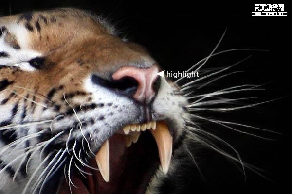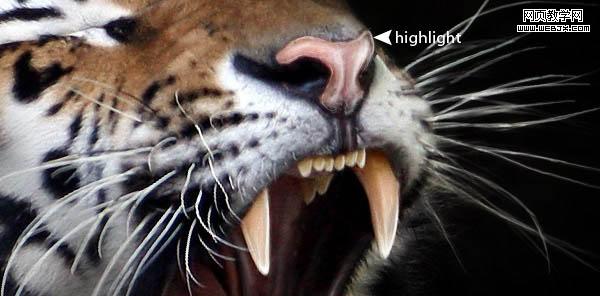 13、不要忘了在老虎的嘴唇和面頰上也加上一些高光。