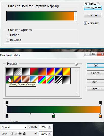 25、下面添加一個漸變圖層蒙版,選擇圖中第二行第一個的漸變,然后將最左邊的顏色改為: #121929,然后點擊確定。