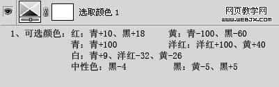 3、創建可選顏色調整圖層,參數設置如下圖。