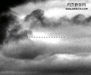 按ctrl+m打開曲線面板,曲線具有精控的功能,這樣我們就可以在圖像中做出一小塊白色的云層來增加對比度。在圖像頂部靠左大概三分之一的地方,這些白色的區域我們等下將要上光束從這邊透出來。