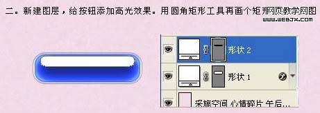 2、新建一個圖層,給按鈕添加高光效果。用圓角矩形工具再畫一個較小的圓角矩形,如下圖。 |