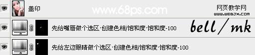 6、用鋼筆勾出右邊眼睛的選區,創建色相/飽和度調整圖層,飽和度設為:-100。