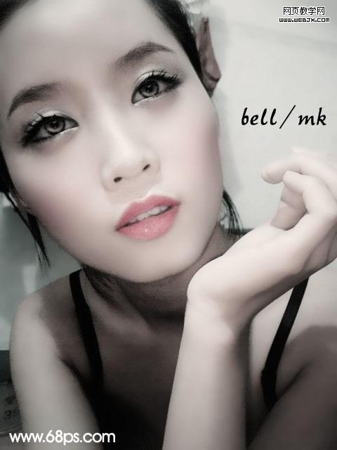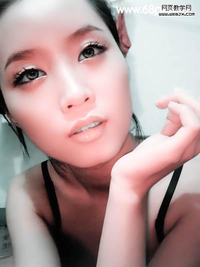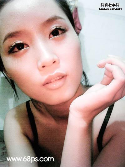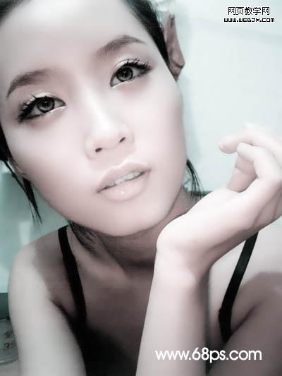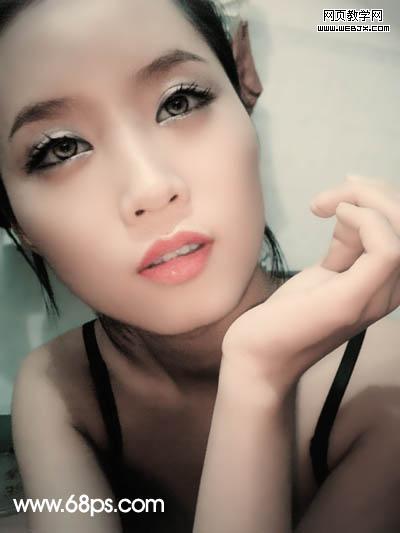 原圖素材偏色實在是比較嚴重,如果要真的還原,可能要花費很多功夫。不過作者非常巧妙的把圖片的色調減掉。這樣偏色部分就可以忽略。只要給人物磨好皮,再適當潤下色,精美的效果就出來了。