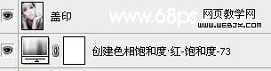 9、創建色相/飽和度調整圖層,選擇紅色,把飽和度設為:-73,效果如圖14。