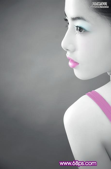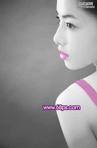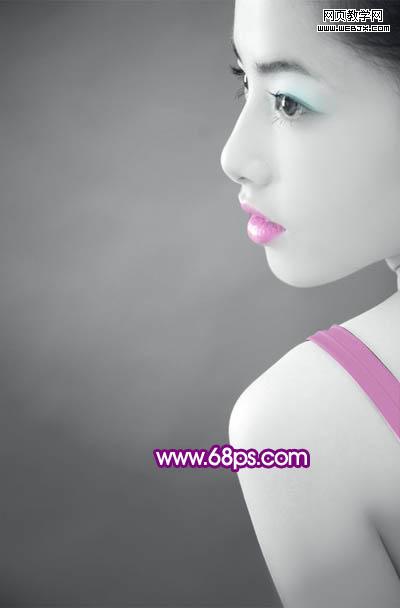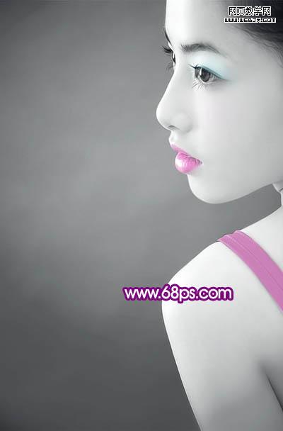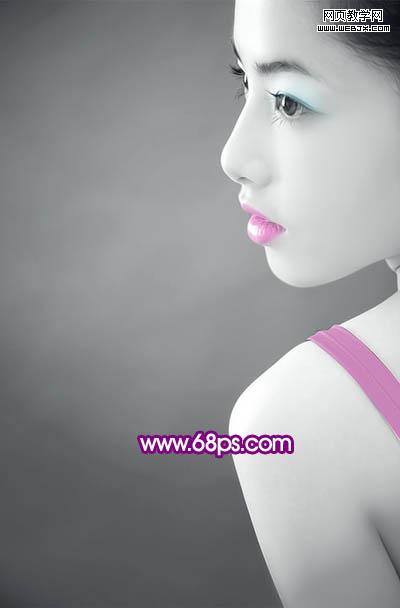 5、新建一個圖層,圖層混合模式改為“柔光”,把前景顏色設置為:#fe058c,然后用畫筆涂抹人物嘴部,給人物加口紅,效果如下圖。