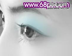 6、新建一個圖層,把前景顏色設置為:#93d6dc,用畫筆涂抹眼影部分,如圖9,涂好后把圖層混合模式改為“疊加”,效果如圖10。