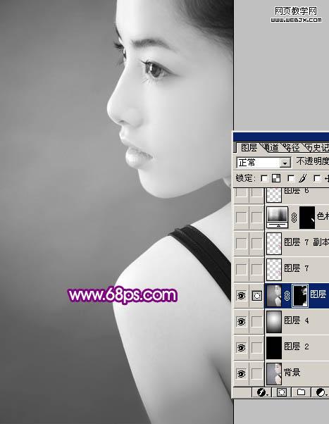 2、新建一個圖層,選擇漸變工具,顏色設置為黑白,拉出圖2所示的黑白徑向漸變,確定后把圖層混合模式改為“柔光”,圖層不透明度改為:30%,效果如圖3。