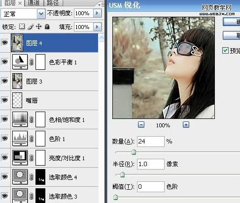 13、新建一個(gè)圖層,蓋印圖層,執(zhí)行:濾鏡 > 銳化 > usm銳化,參數(shù)設(shè)置如下圖。