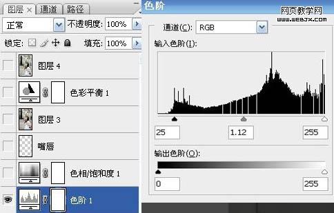 8、創(chuàng)建色階調(diào)整圖層,參數(shù)及效果如下圖。