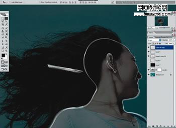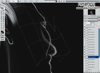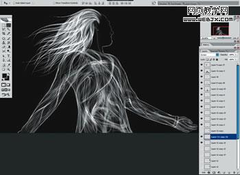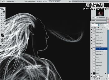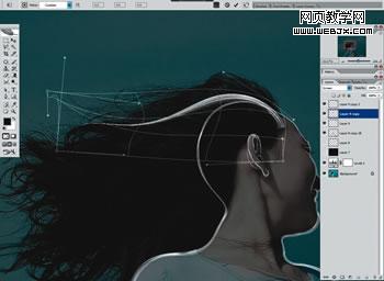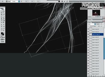 把混合模式改為 濾色 ,使用 變形工具 把它扭曲成發(fā)絲狀,不需要的地方就蒙版擦去